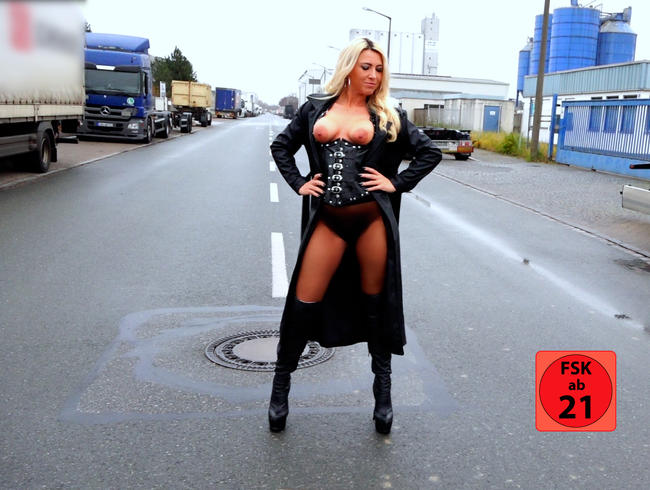 Als absolut versaute Hobbyhure war ich an einem beliebten Straßentreff unterwegs! Mein langer Ledermantel umhüllte meine Ledercorsage, Nylon und Lederstiefel. Denn an diesem Straßentreff stehen immer ganz viele LKW Fahrer und es kommt immer mal ein geiler Bock vorbei, der Bock auf eine dreckige Fickschlampe hat. Und HIER stehen nicht nur die hemmungslosesten, nein auch die perversesten Hobbyhuren! Und genau so eine bin ich und der nächste Ficker stand schon vor mir. Denn was gibt es geileres als eine verbrauchte Straßenschlampe blank in alle Ficklöcher zu bumsen. Und wie krass war das bitte, als ich einfach meine geile Pisse laufen ließ und den Fickschwanz vollpisste, er ihn dann wieder uncut zurück ins Arschloch stieß und so lange fickte bis er mir seinen Samen in mein Maul spritzte. Doch ne perverse Revanche musste sein und er pisste mich dreckig voll.