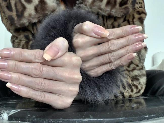 Eingekleidet in Pelzjacke und enger schwarzer Lederhose. Heute zeige ich Dir meine langen Französischen Fingernägel. Sie sind natürlich, kein Plastik! Aufregende Minuten mit den schönen Händen, in der Pelzjacke und meinen langen Fingernägeln erwarten Dich! Schöne Posings, Mittelfinger, Nahaufnahmen. #fingernägel