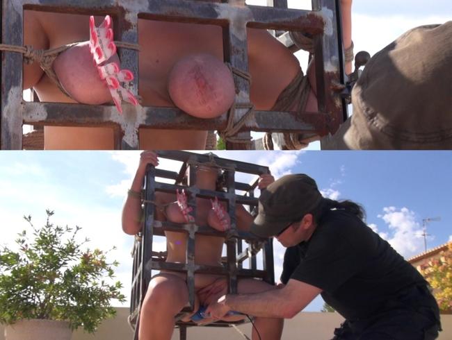 Ich bin nackt mit Knebel in einem Metallkäfig gefesselt. Meine Titten werden mit Klammern und meine Fotze mit einem Vibrostab ohne Gnade bearbeitet. Ich werde von Zwangsorgasmus zu Zwangsorgasmus getrieben. Was für eine harte Folter. Hier der zweite Teil des Dreiteilers.
