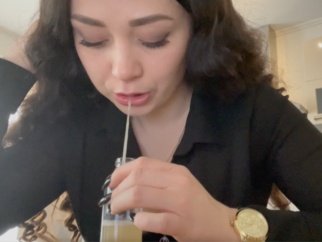 Sieh mir dabei zu wie ich eine schöne Ladung süße, klebrige Gummibärchen-Spucke abfülle. Der Loser kann es bestimmt schon kaum abwarten, bis er sein göttliches Getränk in den Händen hält. Wie sehr fickt dich der Gedanke wie ich wohl schmecke?